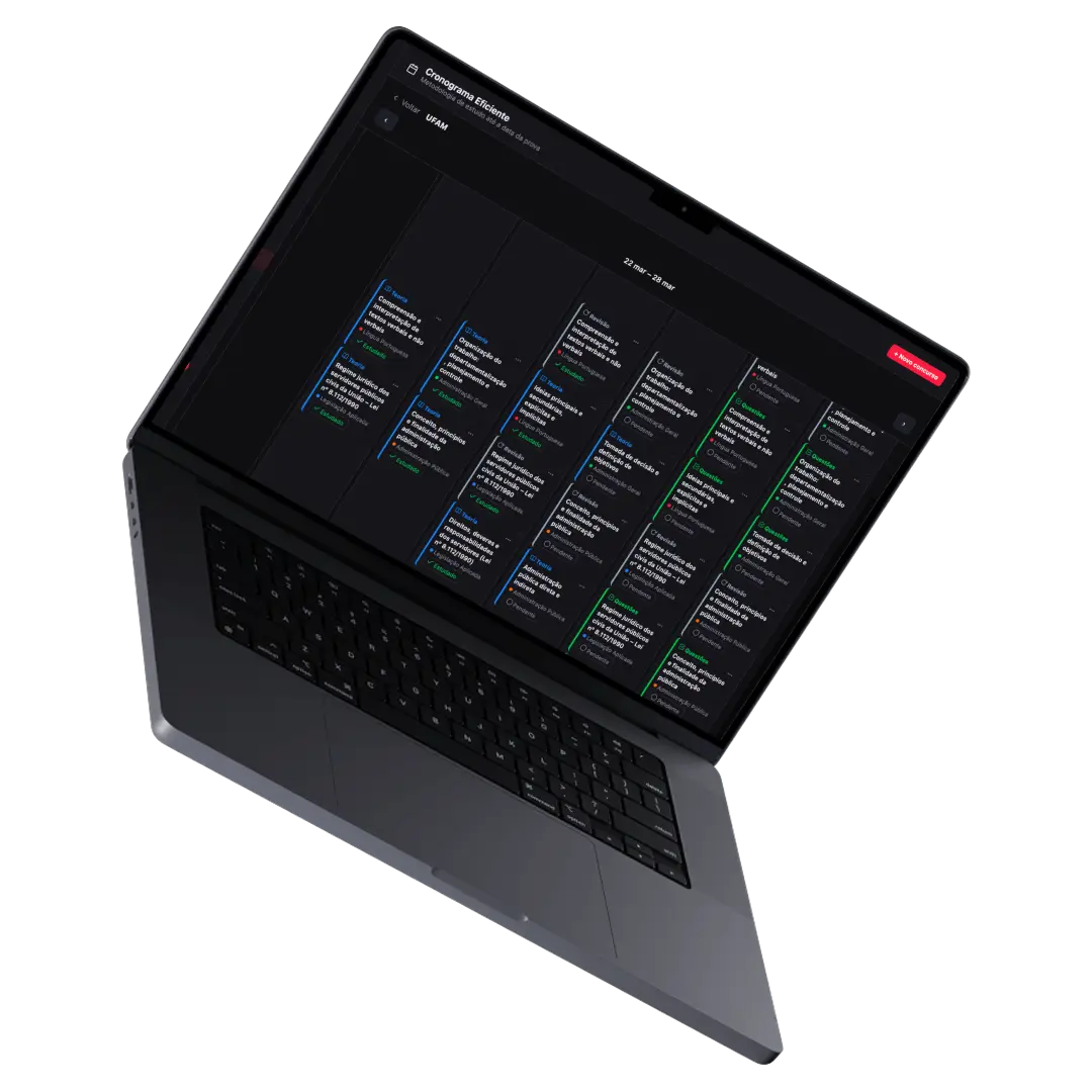 Planejamento, cronograma personalizado, simulados e técnicas de estudo que funcionam. Tudo que você precisa para conquistar sua vaga — no mesmo lugar.
